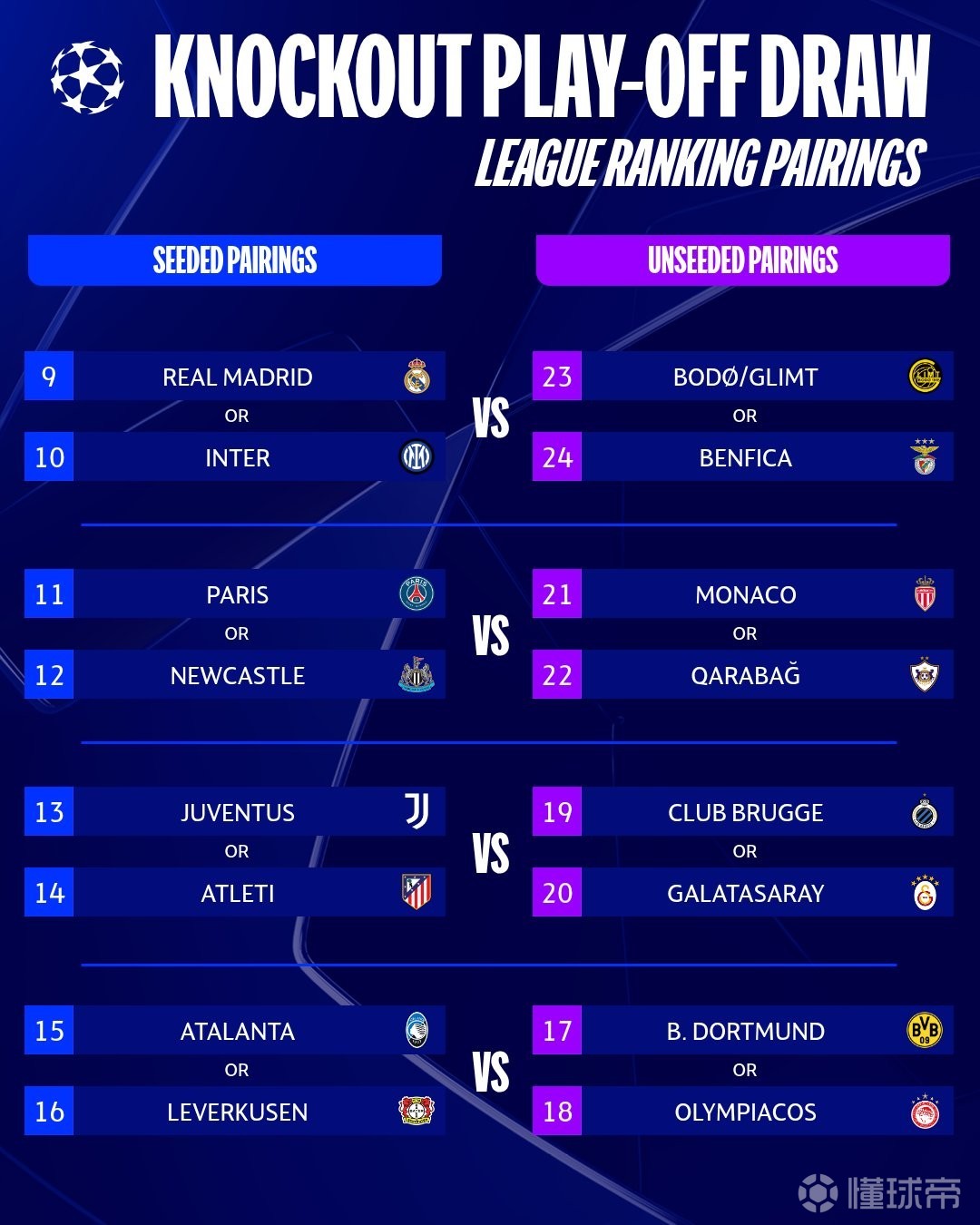 欧冠淘汰赛附加赛抽签19:00进行,皇马、巴黎等球队将确定对手