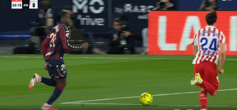 第68分钟,巴勃罗-马丁内斯超远距离打门尝试,皮球高出球门